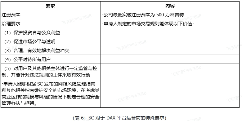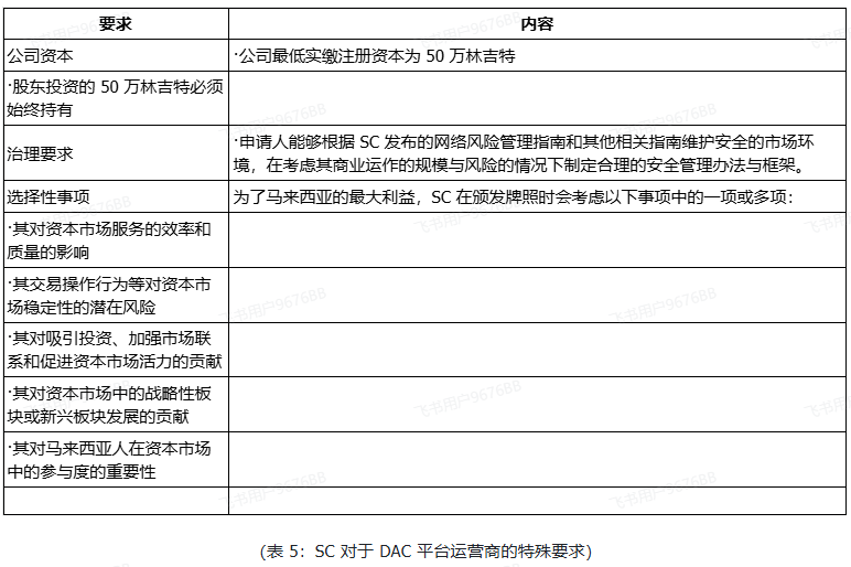 (表 6:SC 对于 DAX 平台运营商的特殊要求)[4] https://www.sc.com.my/resources/media/media-release/sc-takes-enforcement-actions-on-binance-for-illegally-operating-in-malaysia