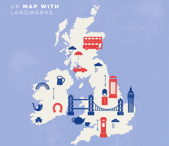 英国本土位于欧洲大陆西北部的不列颠群岛,被北海、英吉利海峡、凯尔特海、爱尔兰海和大西洋包围。国土面积24.41万平方公里(包括内陆水域)。英国分为英格兰、威尔士、苏格兰和北爱尔兰四个部分,首都为伦敦。其中英格兰13.04万平方公里,苏格兰7.88万平方公里,威尔士2.08万平方公里,北爱尔兰1.41万平方公里。人口超过6700万,是继美国、中国、日本、德国、印度之后的第六大经济体。