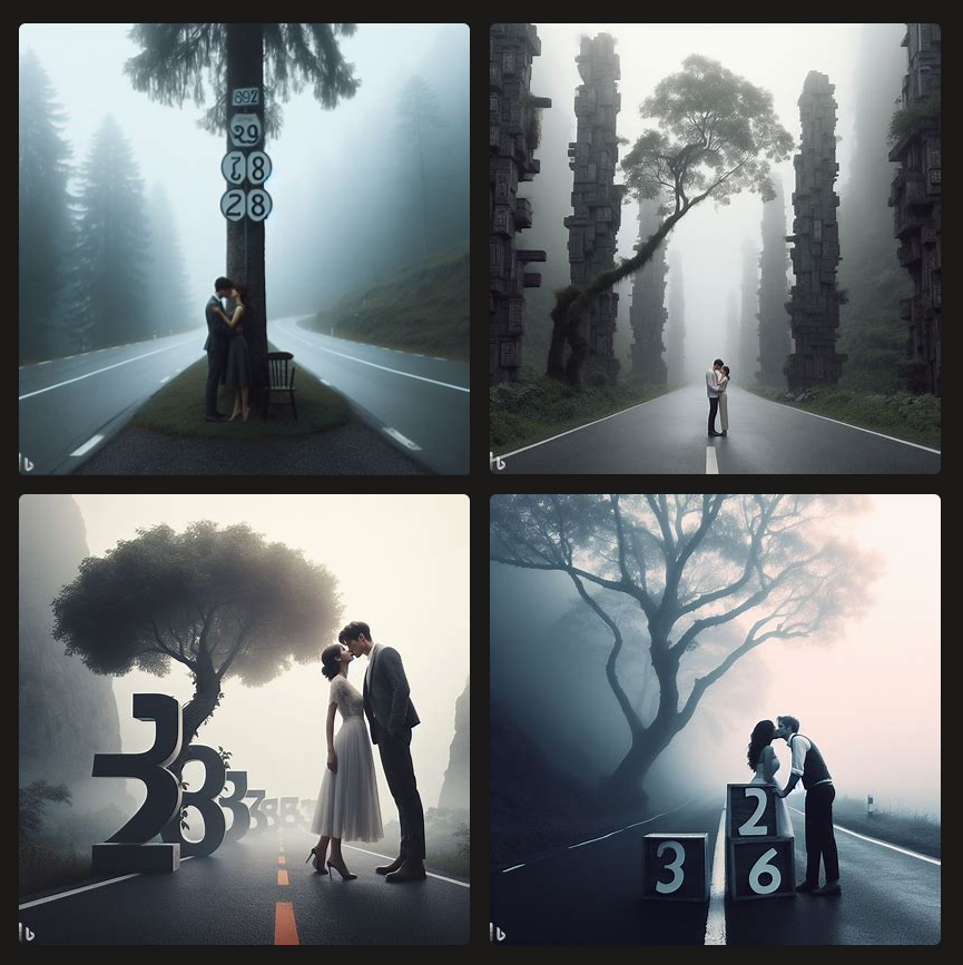在这里是可以直接进行绘画的,直接要这里告诉助手你要画的是什么就可以,比如,我告诉AI:帮我画一幅画:参天的大数,干净幽远的道路,微微有雾,一对帅气的恋人正在大树下拥吻,整个意境传达出安静、浪漫、唯美的感觉。