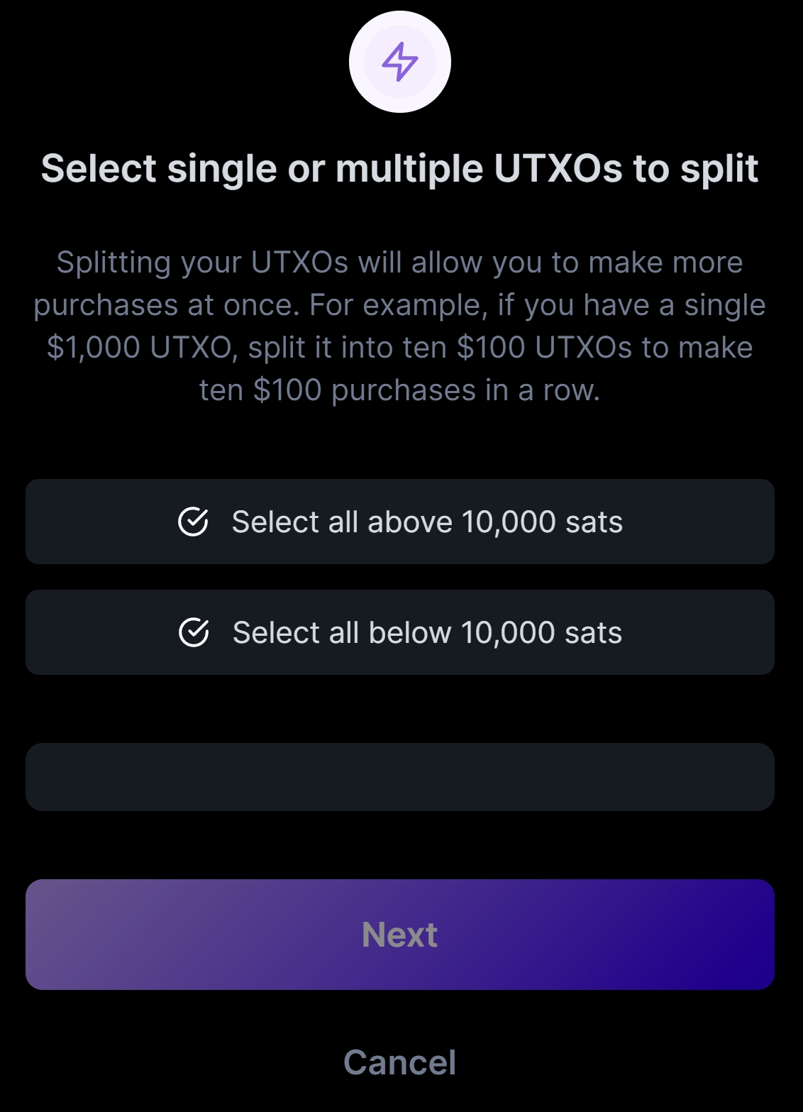 然后底部有一个地址要填,表示要将分割后的UXTO发送到哪个钱包,注意,这个接收地址接下来我们要填ATOM的钱包地址了!