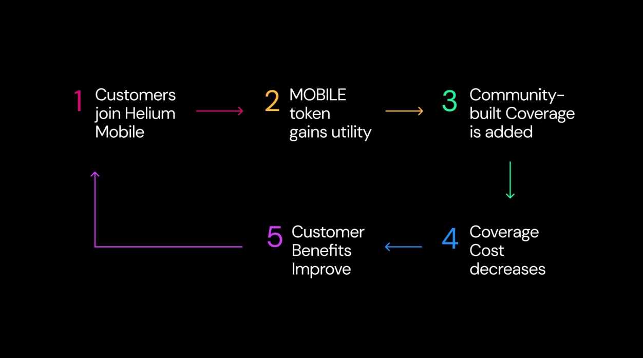 Helium Mobile是一个去中心化的5G网络,使客户(而不是运营商)成为网络所有者和运营商。Helium Mobile用户只需在Helium 5G网络上使用手机即可获得奖励,从而让消费者拥有其移动套餐和为其提供支持的网络的所有权,最终达成网络飞轮效应,用户数据增加,从而更加激励人们部署额外的Helium 5G覆盖范围,随着覆盖范围的矿大,使用网络成本会更低,并且花费更多,因此网络增长、成本下降和数据信用使用量增加的飞轮效应使得这个项目备受关注。