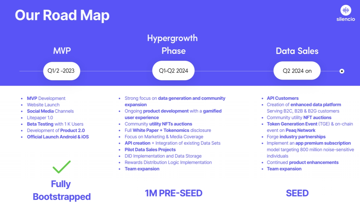 Silencio 是一个建立在peag网络上社区驱动的平台,致力于解决城市地区日益严重的噪音污染问题。 该项目通过以Nosie coin的形式提供奖励,鼓励用户贡献Hyperlocal(社区或者小区)噪声污染数据。采取创新的生态经济模式让用户积极参与对抗噪音污染,同时从他们的贡献中受益。通过收集准确的实时数据。Silencio 旨在利用智能手机的力量改变噪声污染监测,从而消除原本噪音检测对大量固定环境传感器的需求。内置麦克风的智能手机能够测量分贝 的声级并绘制超局部噪声污染图。 同时还平台还会提供应用商店,用户可以用Nosiecoin兑换商品和服务的机会。以及为植树或保护濒危雨林等有意义的事业捐赠噪音币的能力,