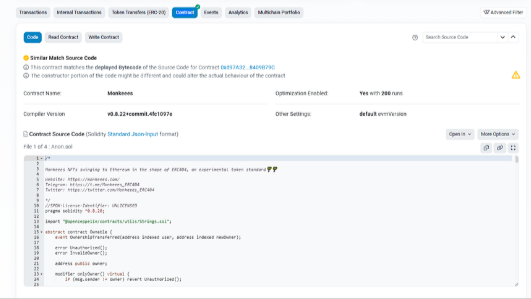 1.从合约中查找社交媒体信息:一般的土狗项目都会在合约中写明自己的社交媒体信息,如推特、电报群、网1.站、白皮书等链接。投资者可以通过查询合约代码看到这些信息。当然,以太坊和Solana的方法不尽相同。 以太坊的一股查找方法:打开以太坊浏览器-输入合约地址-点击Contract按钮-在合约的前几行可以看到关于:Website,Telegram、Twitter等信息的链接,复制这些链接打开浏览器查看。