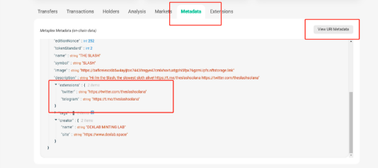 点击Metadata-点击View URI Metadata -在代码中可以看到关于Telegram、Twitter等信息.