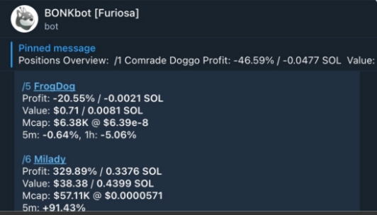 BonkBot 显示数据比较齐全,比如持仓 Token 一目了然,包括价格、涨跌幅、盈亏、总资产等 https://t.me/bonkbot_bot?start=ref_9rjm1