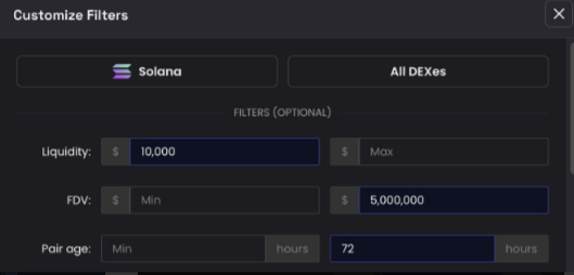 分享了一个我用来筛选土狗的组合指标(上线时长 + 流动性池大小 + FDV),再叠加 TG Bot 来快速交易,我目前在用的是