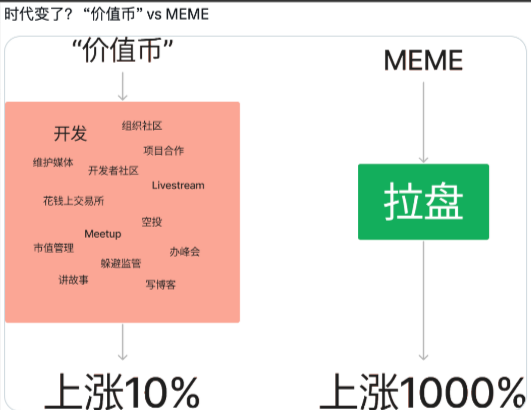 MeMe 上涨的两个关键点:Good stories + wealth creation effect:故事+创富效应。龙头具备这个特质,才能继续发酵,出圈,不断有新的事件传播。