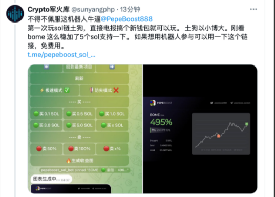 3、PePe: https://t.me/pepeboost_solbot?start=ref0la45r(国产Pepe,中文,买卖速度也可以)