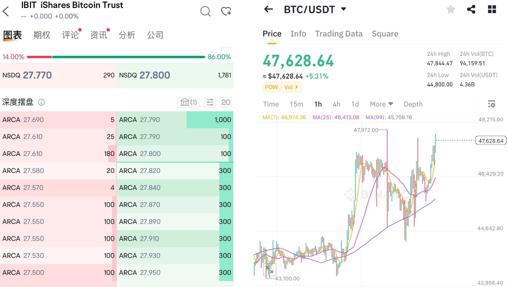 开盘一刻如果依然有差价可以买入IBIT股票,换算买入量然后卖出币,套利