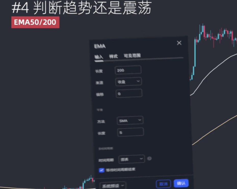 这里用到了EMA50和EMA200两条均线