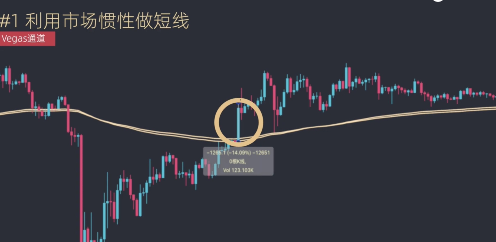 我们可以选择在大阳线附近入场,如果恐高或者错过了入场机会,也可以等价格第一次回落到15分钟的Vegas通道附近时入场,还可以等到接下来回落到1小时通道附近也是不错的入场机会