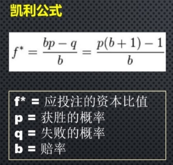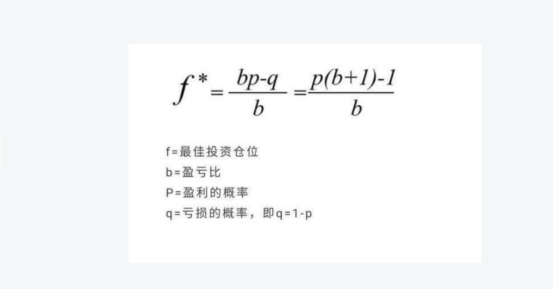 凯利简单公式如下,小学数学水平就能看得懂。其中f*代表仓位,b代表赔率,p代表获胜率,q代表失败率,目p=1-9。