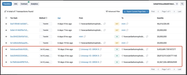 11.04 GROK 上线 20 分钟后 ,地址 howcanibehomophobic.eth 花费 1.4 ETH 买入共计 6661 万枚代币,平均成本 $0.000039