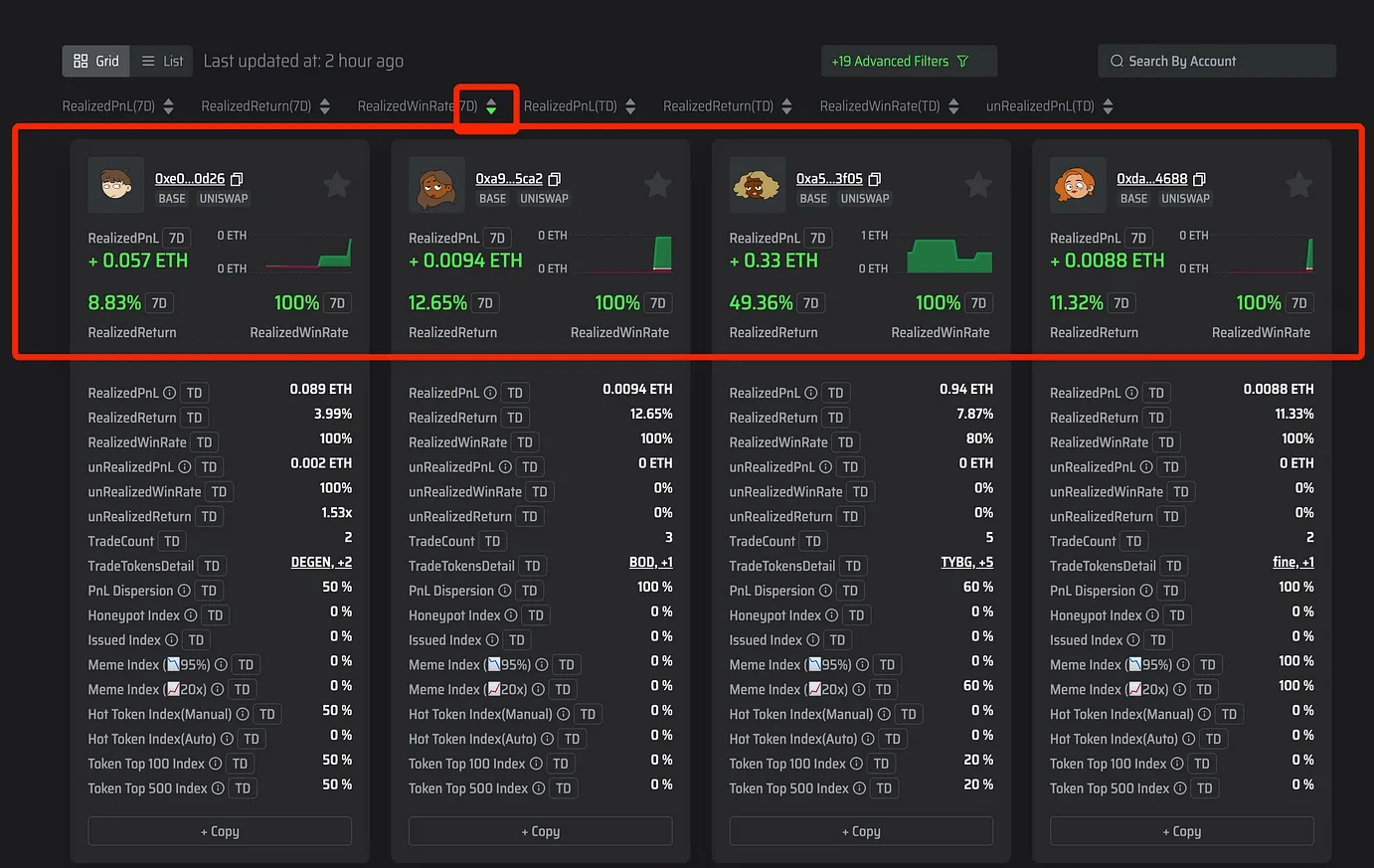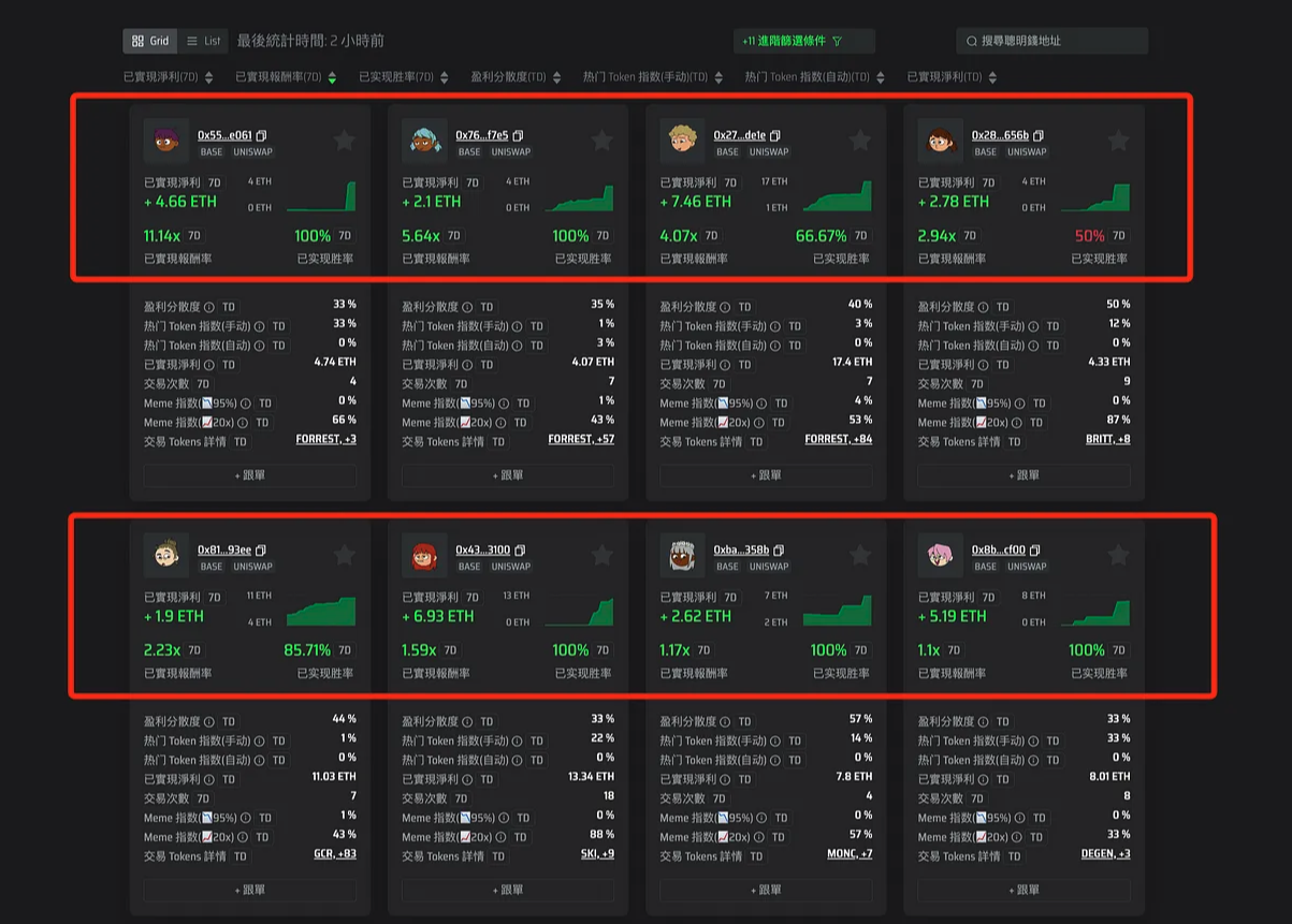 按照上图,我们看一下,筛选出来的 Smart Trader: