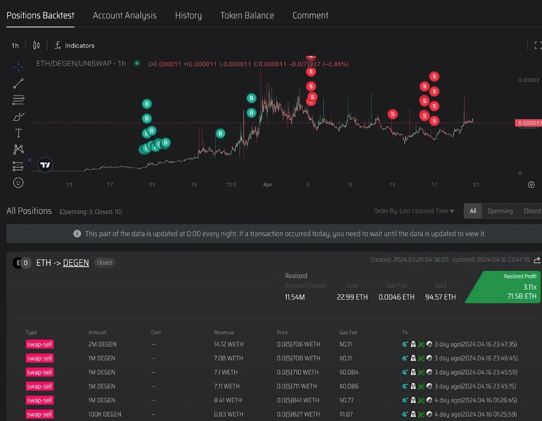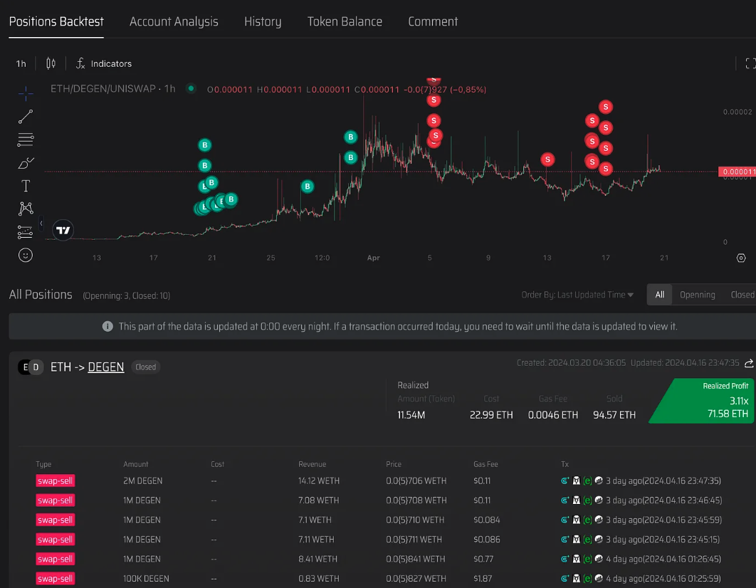也是交易degen,花了 71 ETH,赚了 3倍买入卖出点位比上一位要好