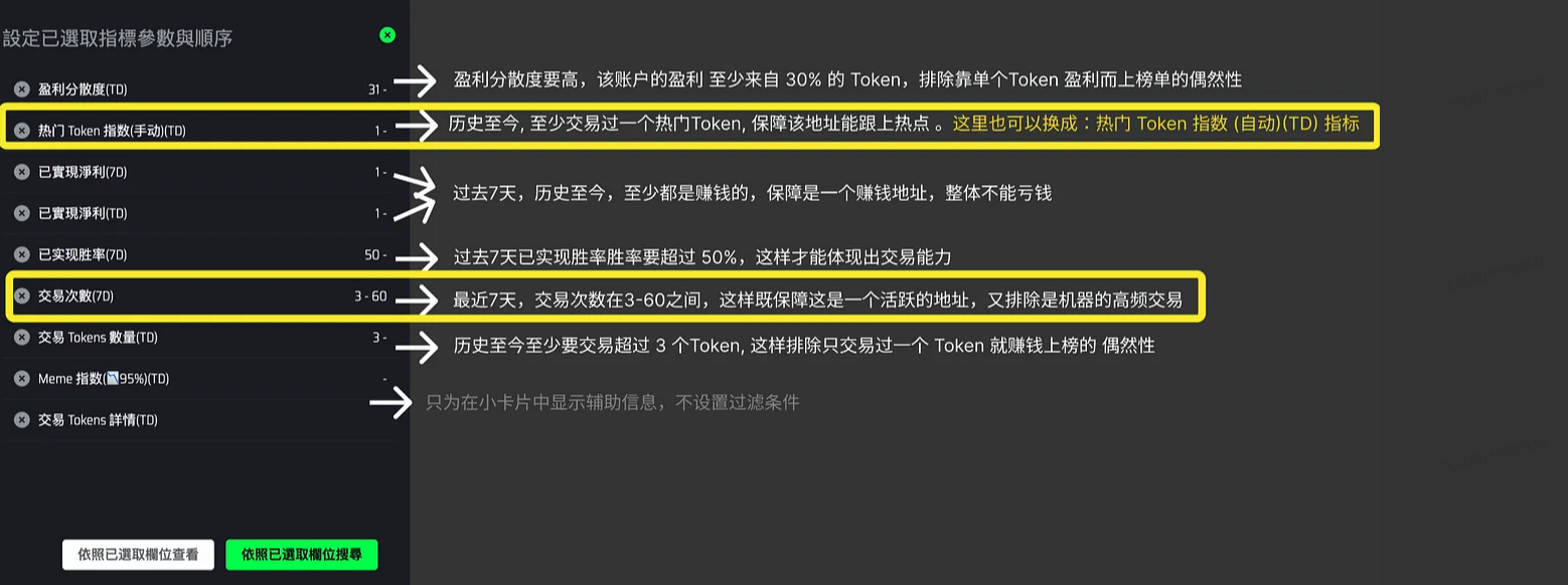 这五个指标能对该地址交易的 Token 做一个整体的画像,基本能判断这个地址能不能买到各种热门的Token,或者是不是买的都是貔貅盘。后面我们也会讲解如何设置过滤使用他们。