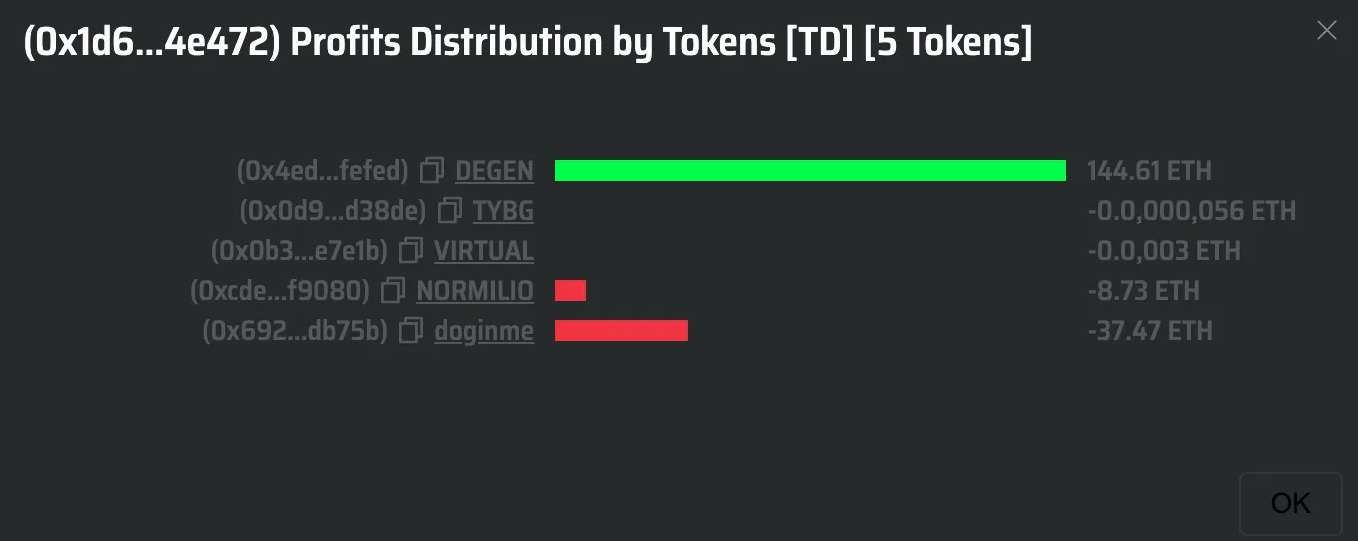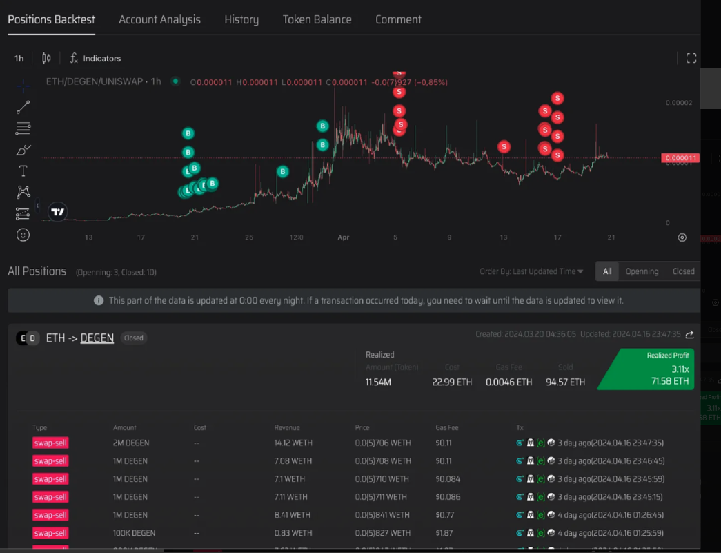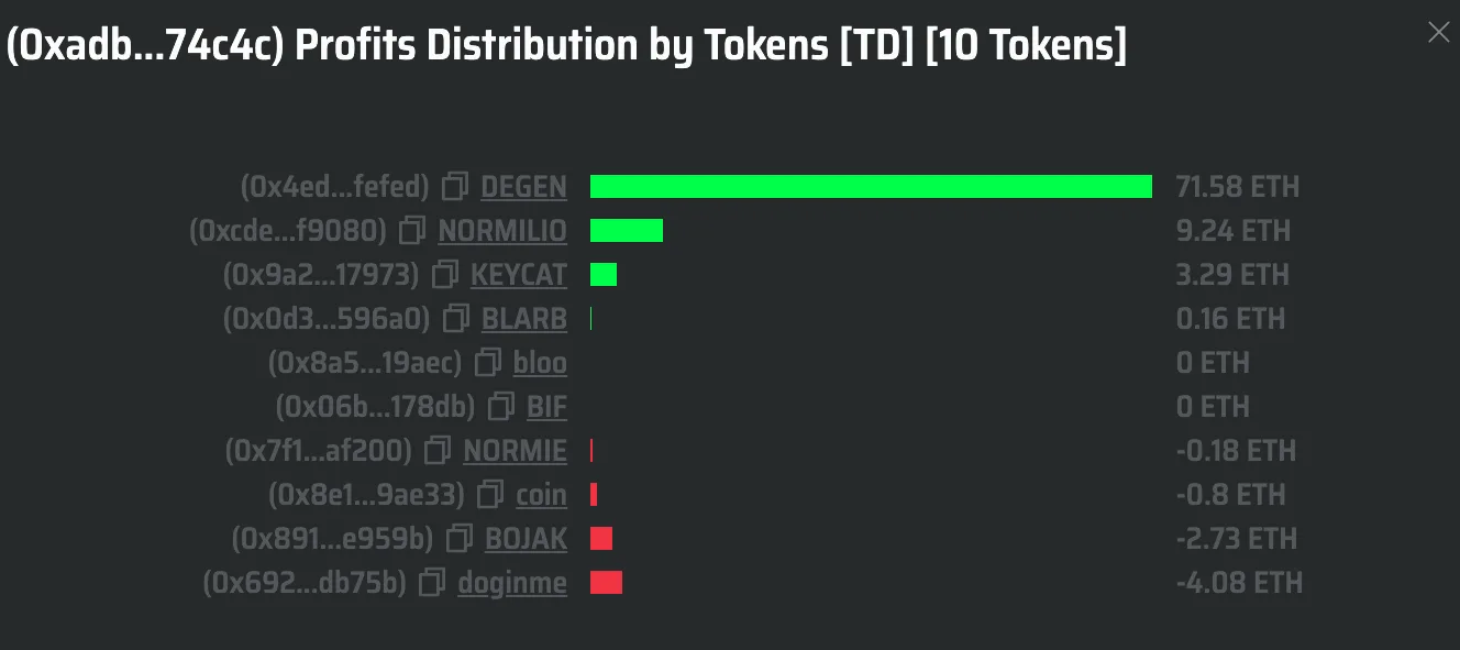 盈利最多的,还是 degen,看一下他在 degen 交易明细