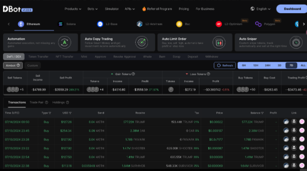 狙击、限价单挂单、快速买卖都有~ 网页+H5+TGbot支持SOL、ETH、ARB、BASE、BSC,SOL支持raydium amm+cmm+cpmm,meteora,pump和moonshot,跟单.都有买卖