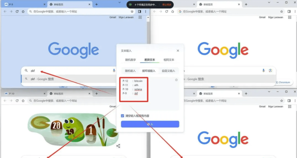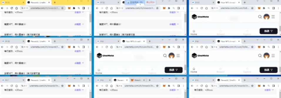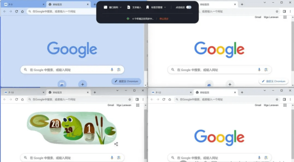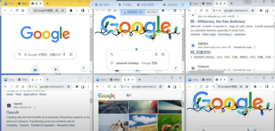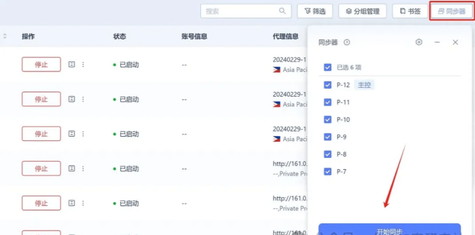 如果你开了50个号以上,你是没办法一条条去做任务的,这时你就需要用到指纹浏览器的"同步器"功能,可以一次同步几十个窗口操作。