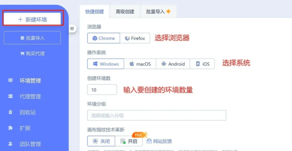 2:如果你用过其他指纹浏览器 可以点击"批量导入"将其导过来