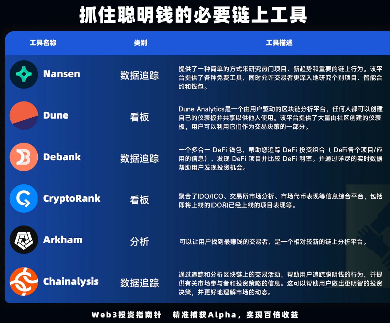 聪明钱指的是加密市场具有突出投研能力和信息优势的专业投资机构或个人投资者,他们有着丰富的交易经验和优异的历史业绩,一般相对资金量较大,投资理念成熟,对加密市场的理解比普通投资者要更全面透彻,聪明钱的动态对普通加密市场资者来说有着特殊的意义。