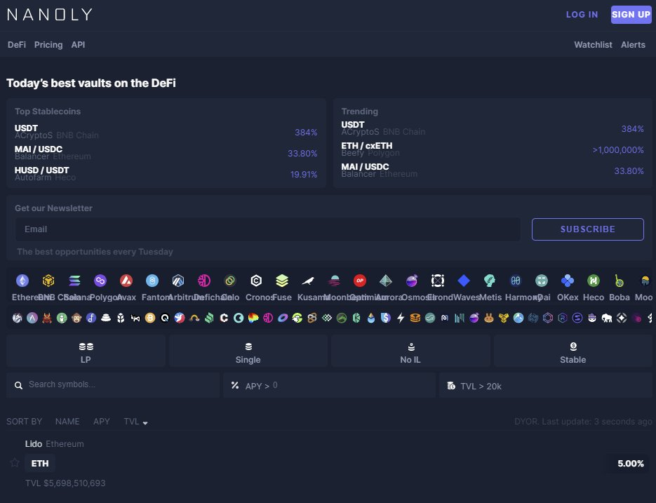 推荐Nanoly 将全网的稳定币理财协议一网打尽。
