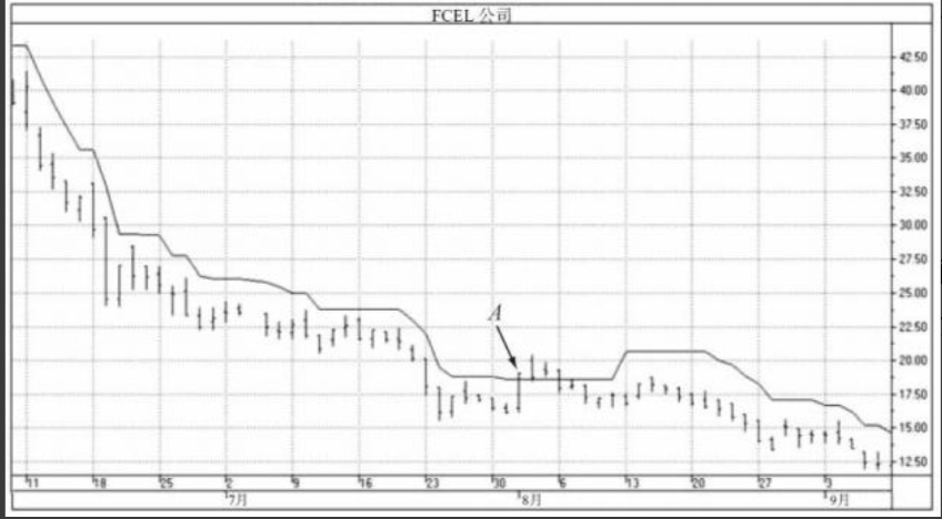 日线图在指数均线附近,股价一个强大的支撑位,所以它不再下跌:在图形的右端,最新一波上扬的行情触碰了根据安全区域指标系统 原则设置的止损点。