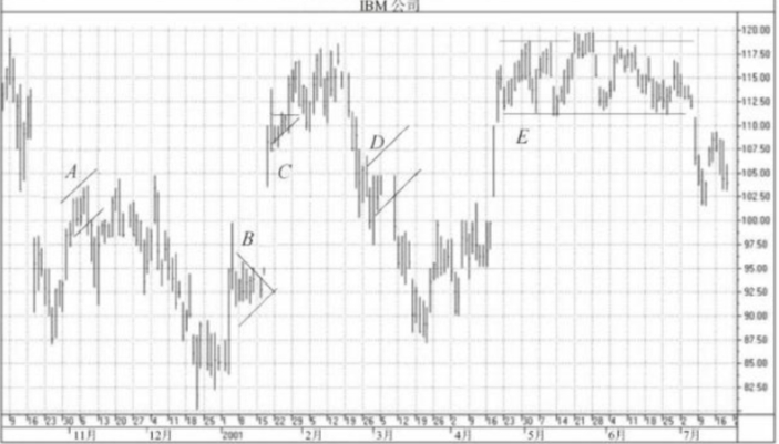 不同的股票在一段时间内呈现相似的形态。如果你发现了率先引领 行情的股票的走势,你可从随后跟进的股票当中寻找近似的形态。我的 -位朋友给我打电话,告诉我一些她喜欢的股票并咨询我的建议,她把 我的注意力引向GX公司的股票。 我发现:这只股票的价格形态与CSC0 股票的形态非常相似,于是我便来了兴致。