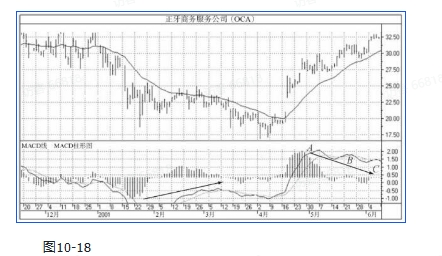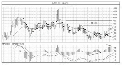 周线图 如图10-17所示,升势行情正受到强大的阻力:周线图的 右端MACD柱形图横盘调整,预示着升势接近尾声。