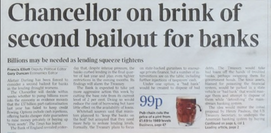 中本聪在比特币的创世区块中写上了一句话:“Chancellor on brink of second bailout for banks”(财政大臣正处于实施第二轮银行紧急援助的边缘),这是当天的头版文章标题。