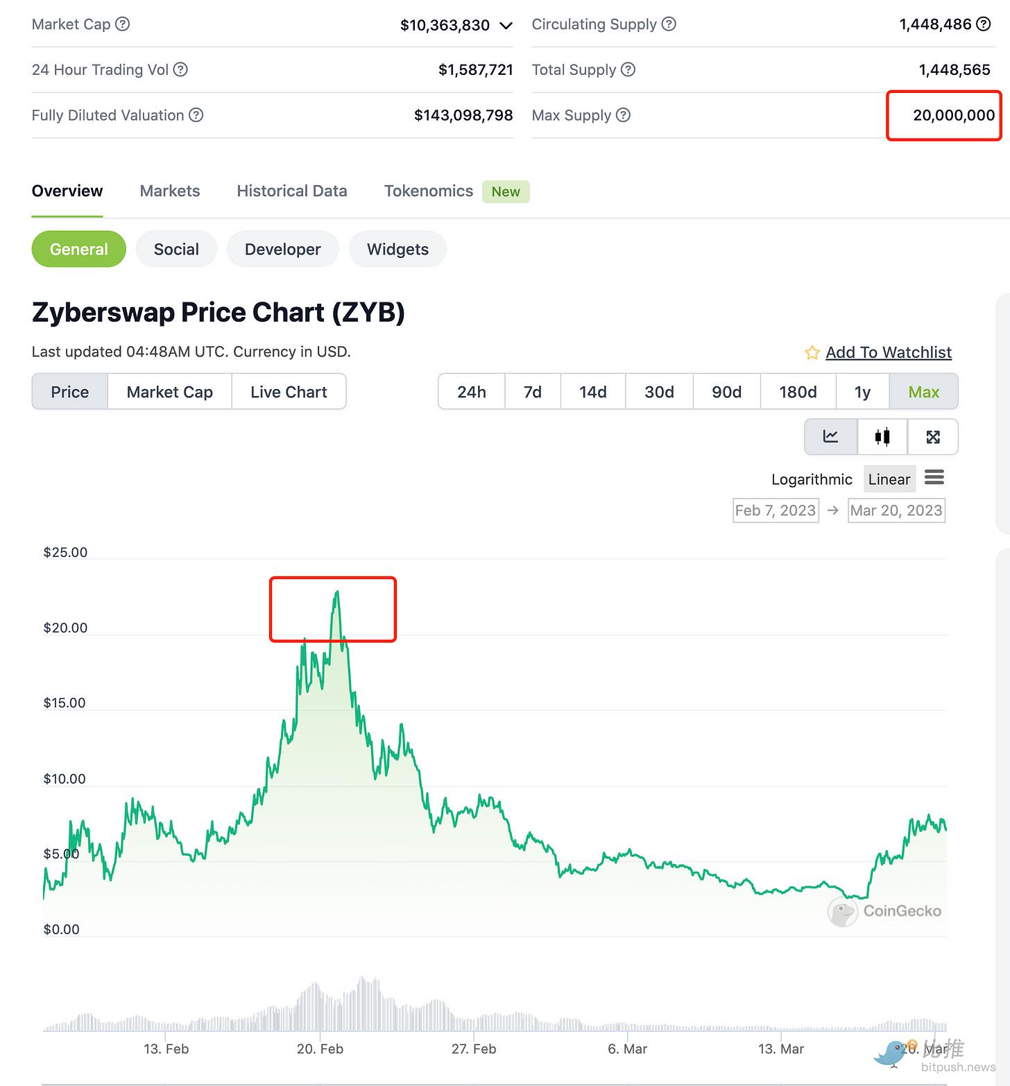 ARB生态上一个DEX ZyberSwap,高点FDV在4亿,常规DEX基本上都是微创新,没有什么太大区别,流动性挖矿/ve/(3,3)模式等具体差异和细节都不太关注。短期流动盘较少+tvl快速增加+空投预期+短期情绪资金高涨等等促成了一波上涨,但这不重要,核心是估值4亿了,意味着假如ARB 是100亿,则DP=4/100=4%,假如ARB=200亿,则DP=2%,常规DEX长期要面临层出不穷的其他竞品的进攻,护城河很难建立,因此越接近定律二3%的上限,越适合换成ARB