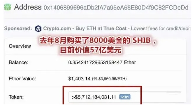 Web3圈的风险和收益相比被无限放大了,比如shib,在上轮牛市时,购买8000美元SHIB的这位投资者,在1年零2个月后,其帐户价值已经变成了57亿美元。